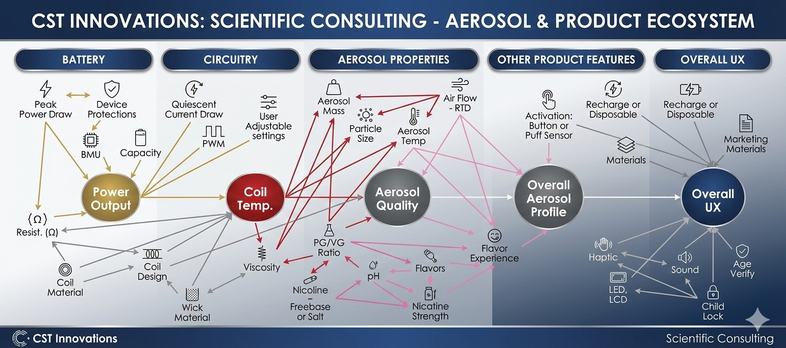ENDS devices are highly integrated systems where every design decision matters. Battery, circuitry, heater technology, aerosol chemistry, and user interaction are tightly linked, and small changes can create outsized impacts on performance, compliance, and risk.